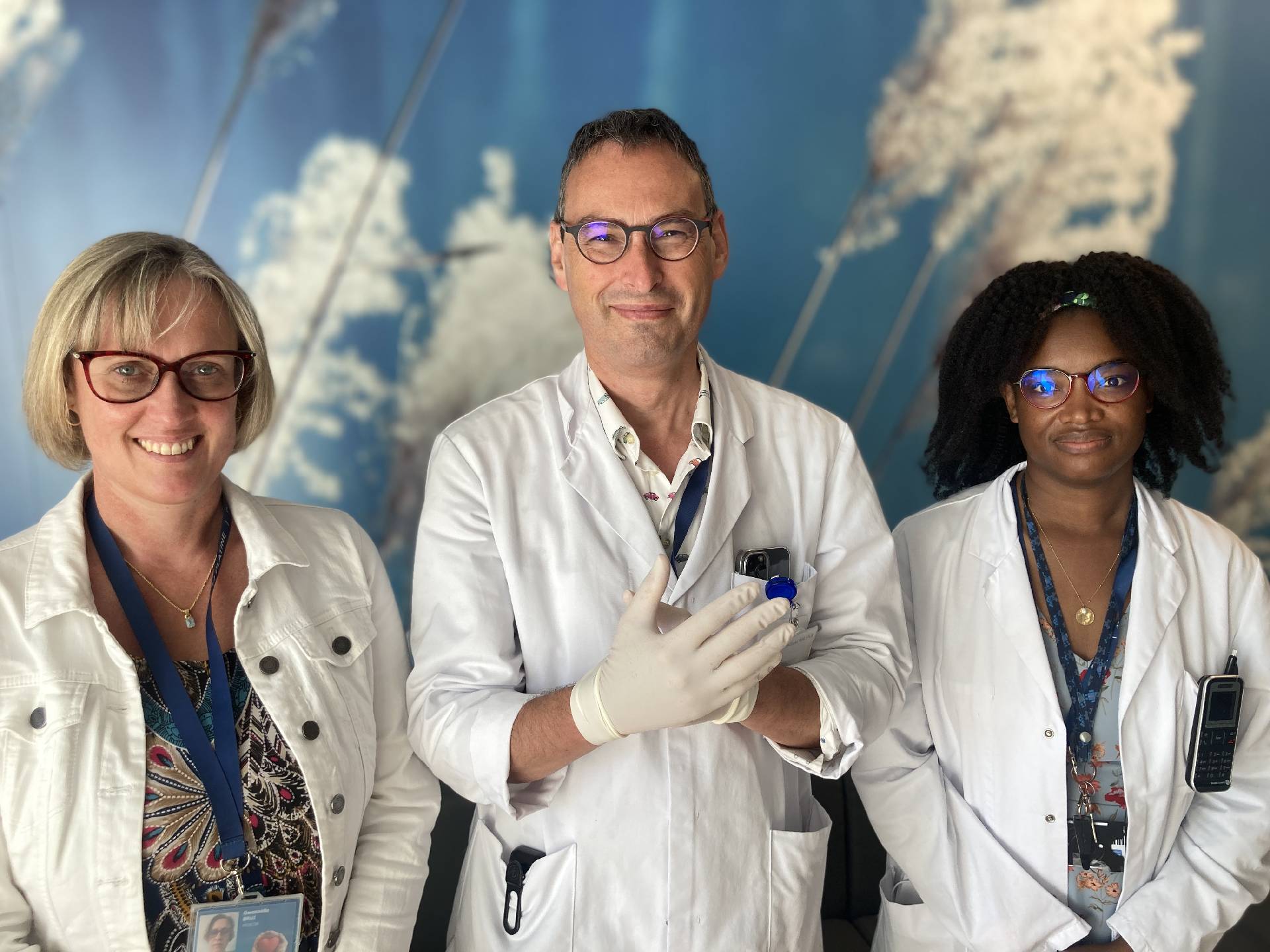 Les responsables du projet. Gwenaëlle Brui, pneumologue et allergologue ; Philippe Malvaux, coordinateur médical du bloc opératoire et Armène Biloa, pharmacienne responsable du matériel et des implants au bloc opératoire.